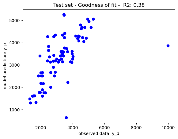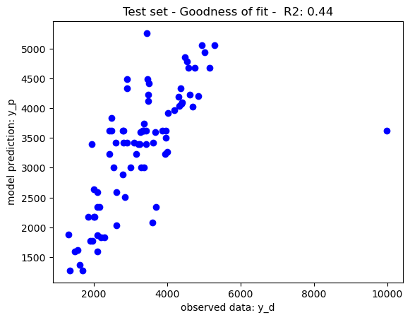 plt.title('Test set - Goodness of fit - R2: %.2f'%r2_score_train)