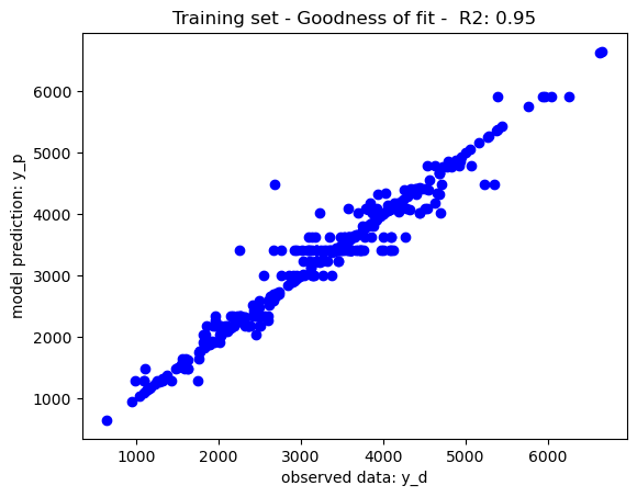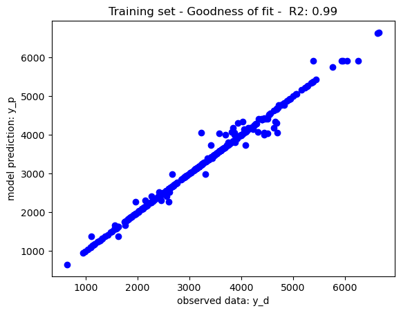 plt.title('Training set - Goodness of fit - R2: %.2f'%r2_score_train)